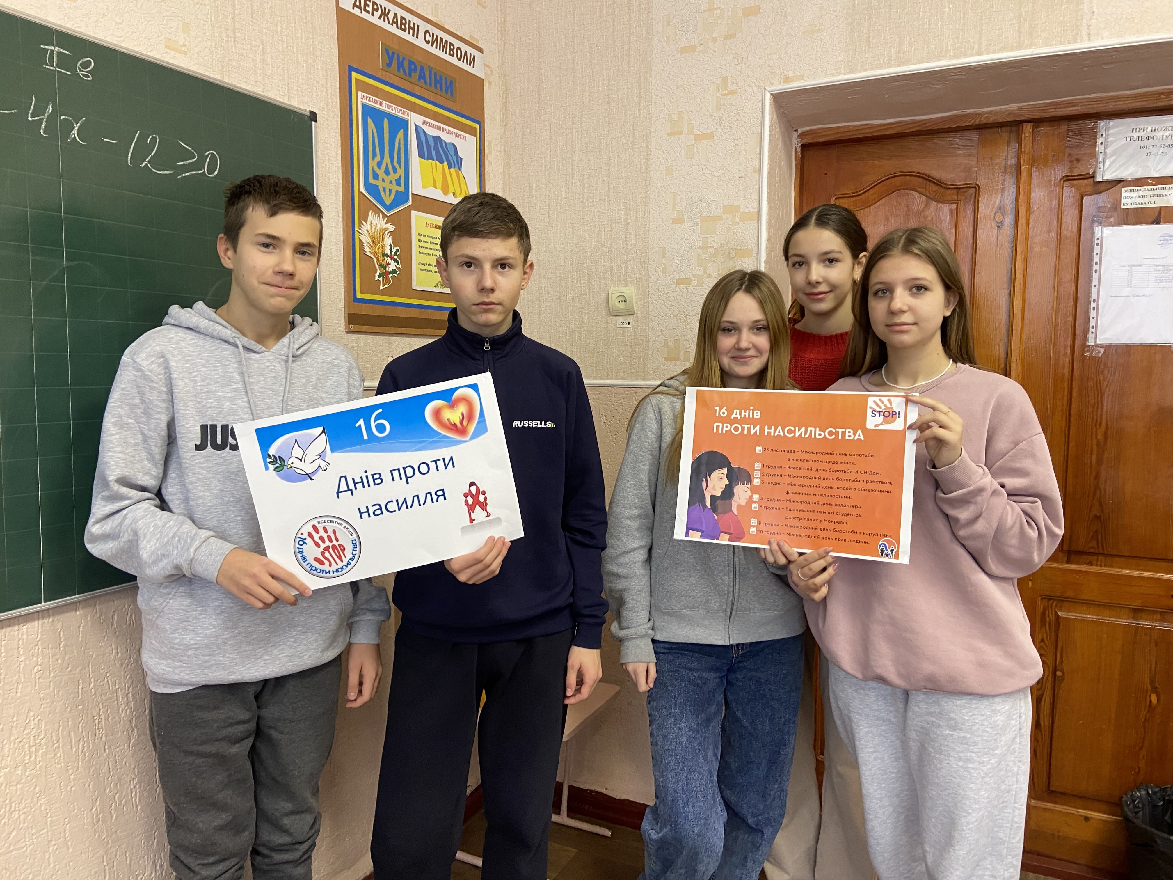 У КУ СумськаЗОШ №18 СМР з 25 11. по 10 12.2023 року проводиться Всеукраїнська акція «16 днів проти насильства».