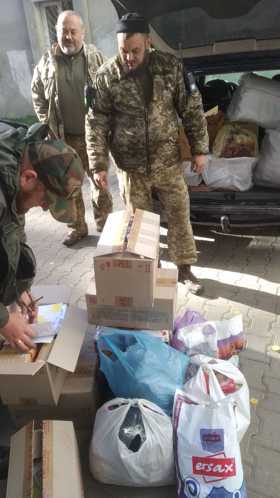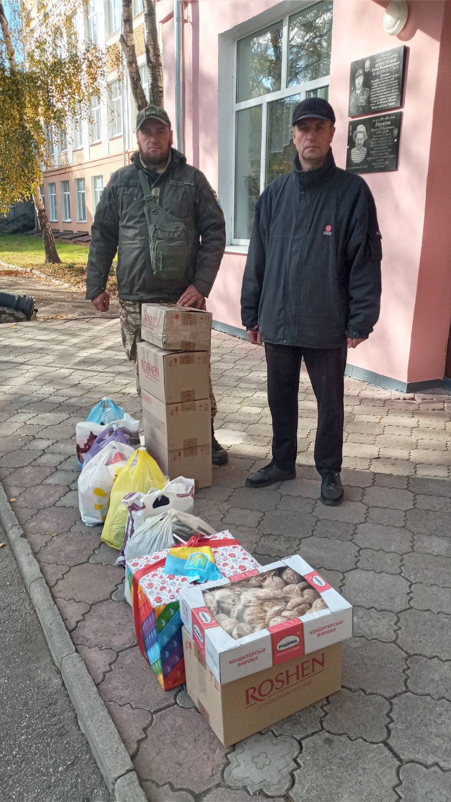 Смаколики, дитячі малюнки й сувеніри, одяг, теплі шкарпетки, шапки, ліки, предмети особистої гігієни зібрали й передали до Дня захисників і захисниць України батьки, учні та вчителі КУ СЗОШ №18 добровольчому формуванню ТРО-8 міста Суми.