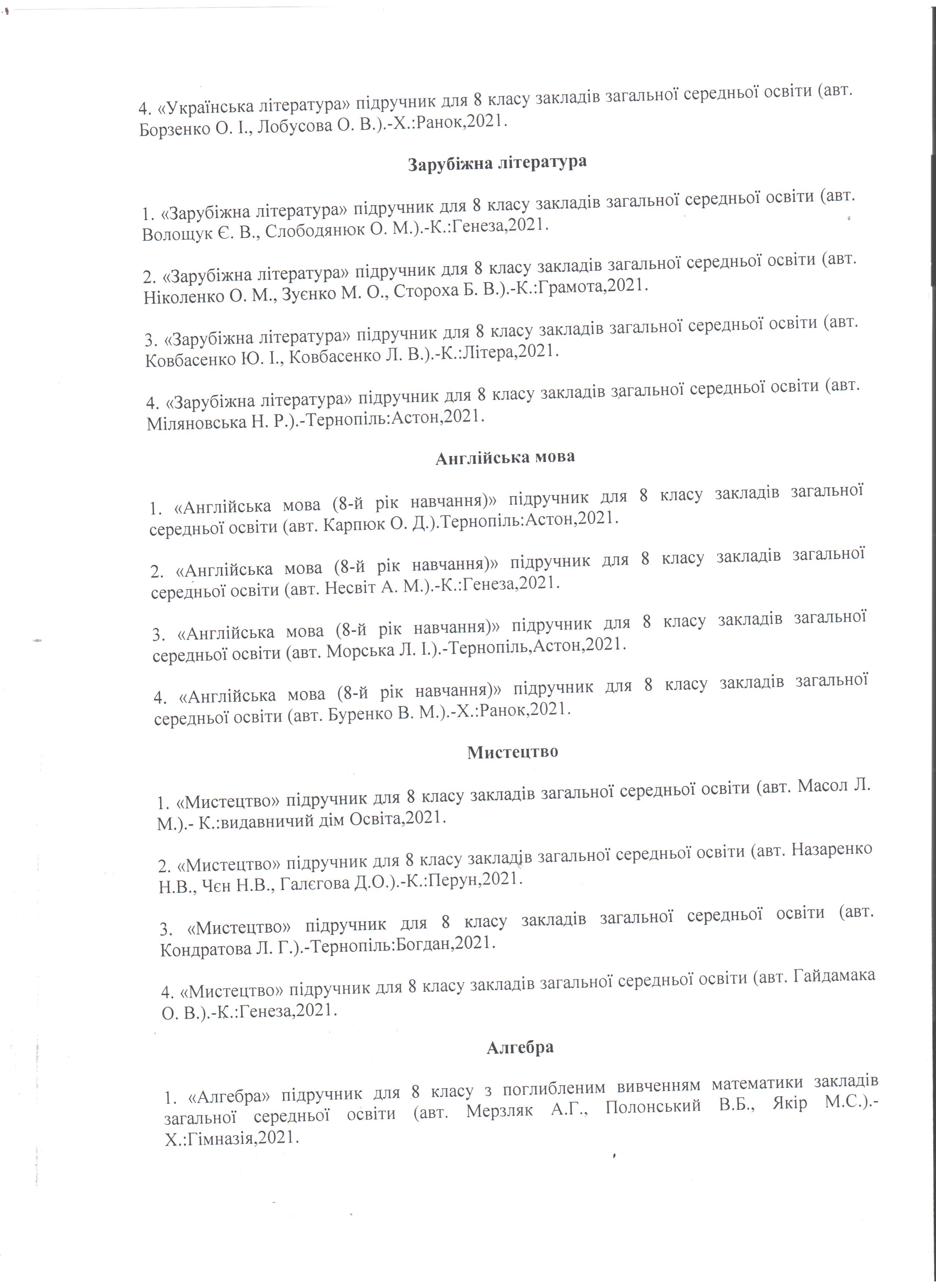 Конкурсний відбір підручників для 8 класу