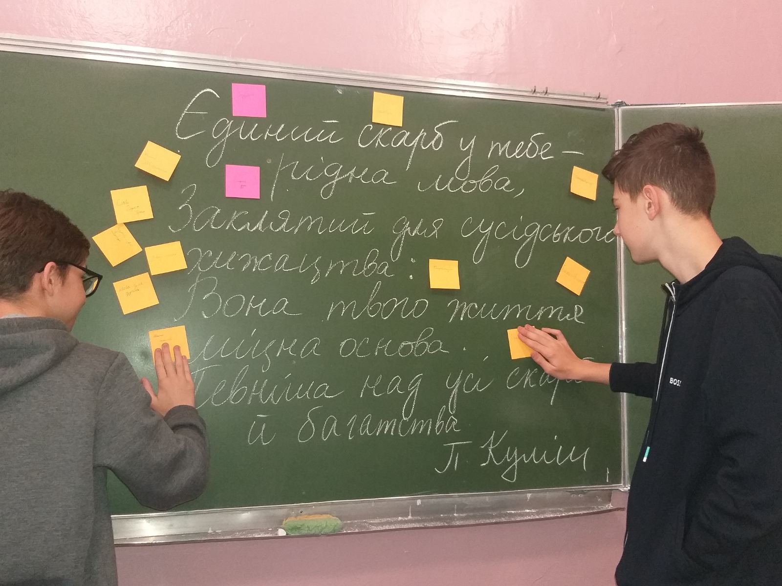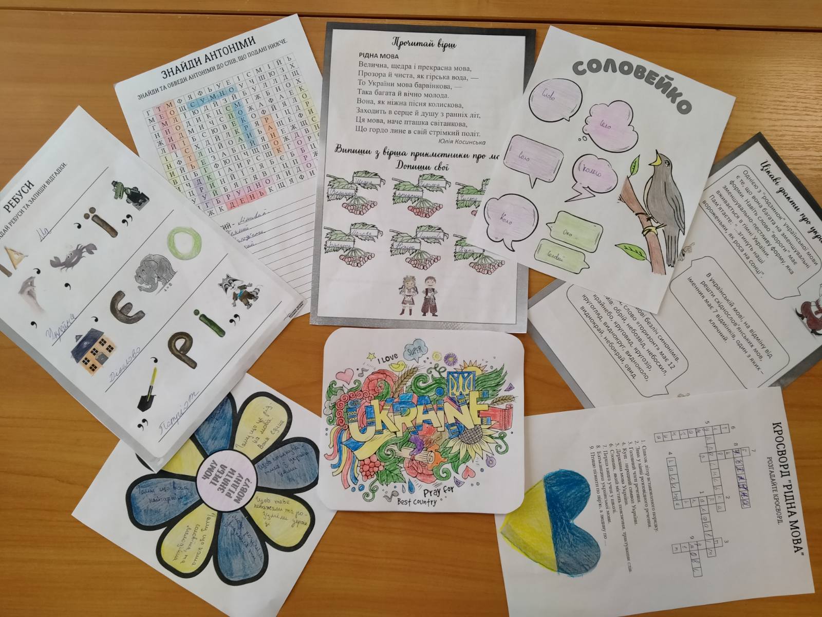 З метою виховання патріотів своєї держави була проведена година єднання “Українська мова – серце наше” в 10-А класі. Креативно провели учні 8 класів гру- конкурс “Вивчай, люби українську мову”. Діти декламували вірші, вчили цитати про мову, розгадували ребуси, кросворди. Емоційно пройшов мовознавчий турнір між учнями 7 класів. Велику дослідницьку роботу провели учні, підготувавши усний журнал “Рідна мово, не одна тобі тисяча літ”. Найстаршим здобувачам освіти була запропонована мовознавча гра “Закучерявимо лексикон рідної мови самобутніми українськими словам”.